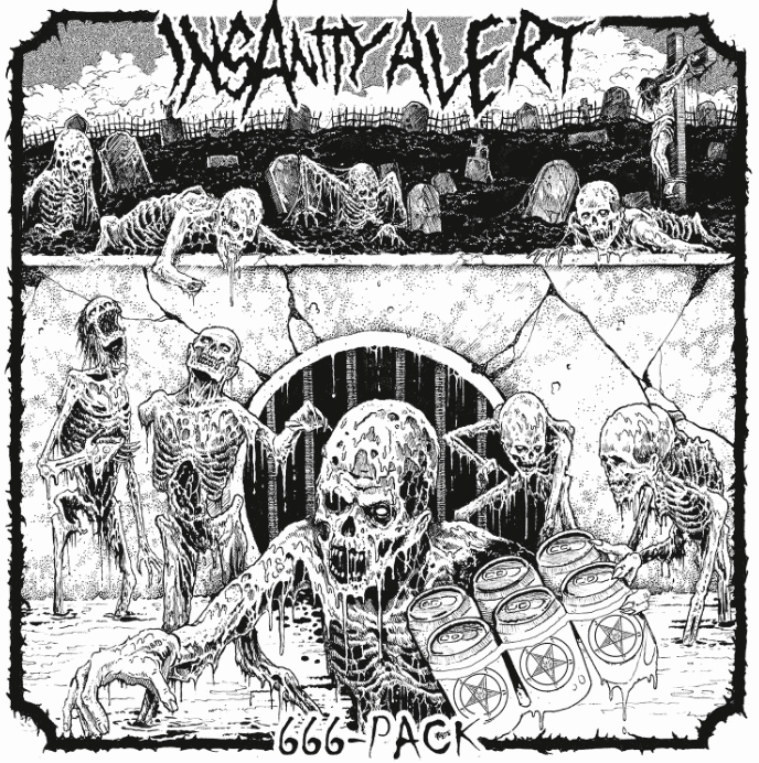 One of the first things I noticed on 666 Pack was that there were 21 songs on it. I then noticed it was only 32 minutes long in total. From that alone you kind of get the picture. You understand what sort/style of music Insanity Alert are bringing. Short, thrashy blasts of crossover chaos is what springs to mind upon seeing that. That can sometimes also mean cheesy, occasionally silly songs designed to not be taken too seriously. Insanity Alert show a surprising amount of depth on 666 Pack though, at least some of the time. Never fear though, beer drinking party goers, there is plenty of messing around too.