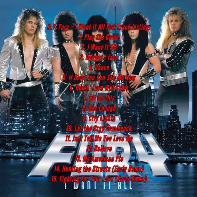 Fast forward thirty-plus years, and the charisma and critical acclaim surrounding N.Y. FURY today have never waned. The buzz is growing in anticipation of Eonian Records’ first official public release of their previously vaulted studio recordings. I Want It All will be released on December 30th, 2022 in the following formats: