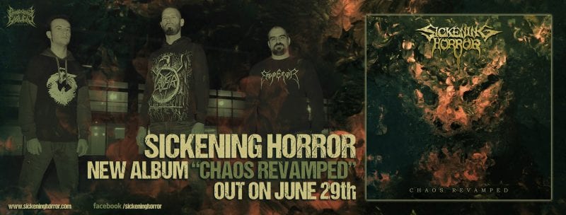 On June 29th 2020 Sickening Horror will release its long awaited 4th studio album “Chaos Revamped” through Pathologically Explicit Recordings.