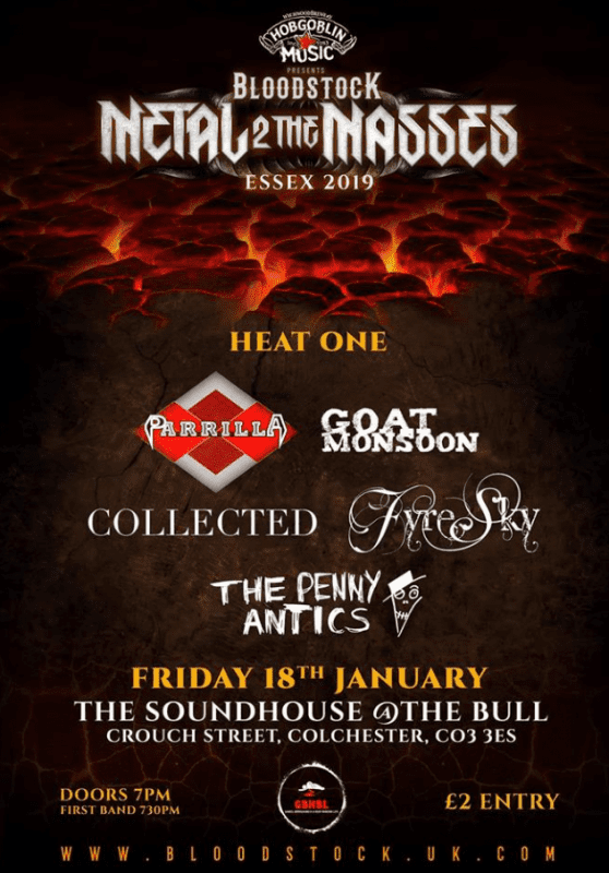 Garage fuzz rockers (their words), Goat Monsoon will play in Heat One of Metal 2 the Masses Essex 2019. They face off against Parrilla, FyreSky, Collected and The Penny Antics on the 18th of January. The event takes place at The Soundhouse which is at The Bull, Colchester, CO3 3ES.