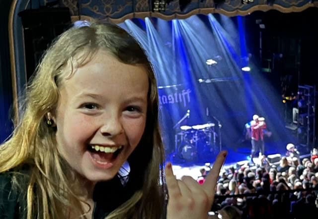 Well, a few things. Firstly, she has been bedded in a bit now as we have tested the waters to see whether she really does want to be there, or just thinks she does because we are there. She has attended many one day festivals, like the last few years at Slam Dunk, she has seen Devin Townsend play The Royal Albert Hall, Sabaton play the OVO Arena Wembley, Avatar and then Blind Guardian play the O2 Forum in Kentish Town and has tickets to see Zeal and Ardor in September. What became apparent at those shows was that she always had a genuinely great time, and sported a beaming smile throughout. She wears her merch from those gigs with pride.