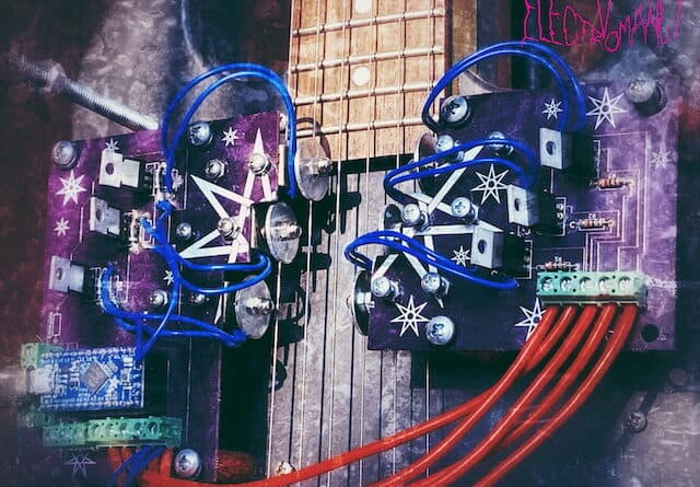 Composed by humans, played by physical robots. In 2018 Satyra was diagnosed with Lyme disease, and was unable to play instruments anymore. Instead of giving up, they spent the next two years slowly building robots to play instruments for them. The result is Electromancy, the robot metal band. Guitars and drums are played by Satyra’s own DIY robotic designs; their bandmates are manikins, cut up into LED fuelled light-shows.