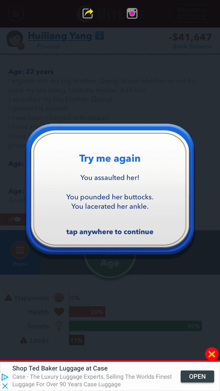 Bitlife is a life-simulator game brought to mobile by the developer, Candywriter LLC. With an age rating of 17+, expect adult humour and comical situations as you work through this “choose your own path” styled game.