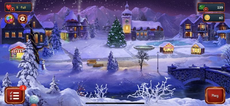 Only joking, this is a free to play match-3 game that thinks building a Christmas town is a core part of gameplay. It would be if you actually built it but you don’t. Instead you are given tasks that unlock new buildings, decorations or ornaments. Then you play as many match-3 games as it takes to earn the required coins to then ‘build’. It’s a matter of pushing the ‘complete task’ button and voila, you’re building a Christmas Town.