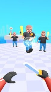 Occasionally bigger brutes will stand in your way and need a few more knife hits to take down but it never becomes difficult. This is simply because the supply of knives never runs out, they can be thrown at fast speeds and one hit on any part of the body has them falling down ‘ragdoll’ style. Even if you do let them approach, they’re so slow that dying is the hardest thing about the game. You’re more likely to hit the odd hostage that crops up here and there.