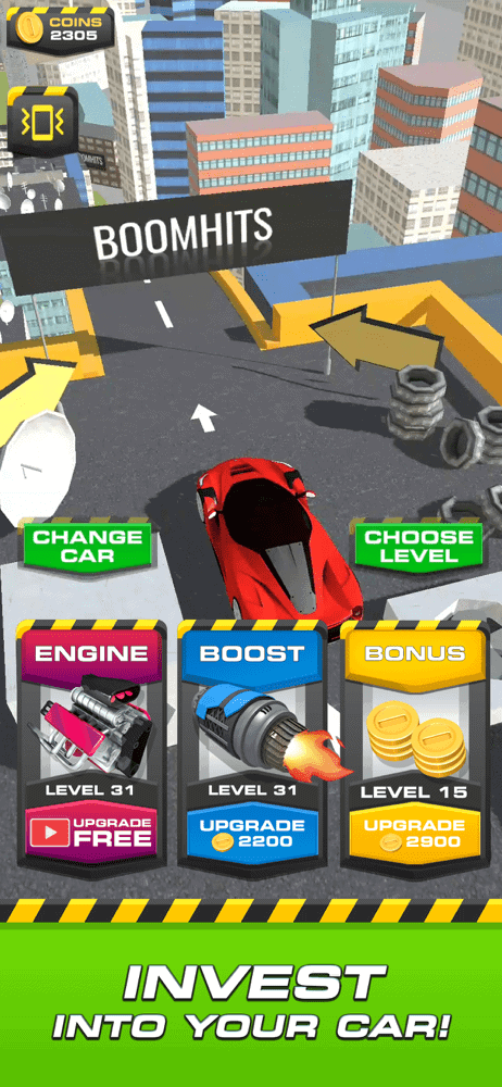 This is it. There’s no change in gameplay. Although the game does have multiple levels, unlocked by reaching set distances, progress really slows down. This is because the cost of upgrades just keeps on increasing. At this point it stops being fun and starts to feel like a chore.