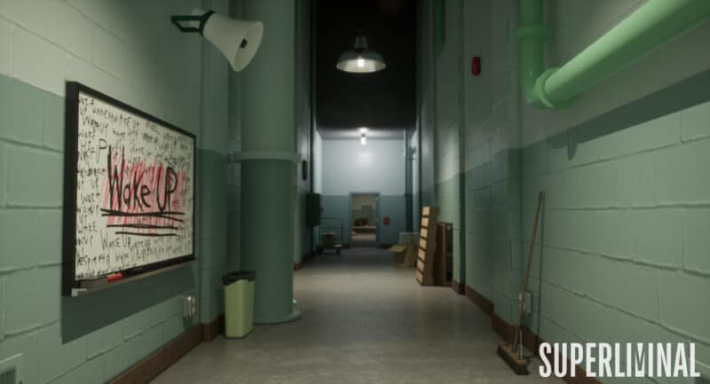 Superliminal is played from a first-person perspective. It incorporates gameplay elements around optical illusions and forced perspective. Certain objects can be moved towards or away from the player and scaled to the size as the player had viewed them. This is an important mechanic in solving puzzles to complete the game.