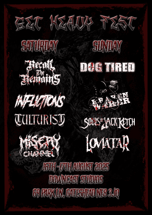 Headlining the Saturday night of the festival is the Telford-based melodic metal band, Recall the Remains. While the Sunday night headliner is Edinburgh-based based groove metal band, Dog Tired. Joining them on the Saturday, the stage will resonate with Inflictions , Culturist , and Misery Channel. Then, on the Sunday, prepare for the onslaught of Kraken Waker, Souls of Jack Ketch, and Loviatar.