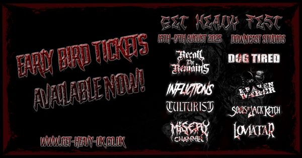 With plenty more bands to come, Get Heavy Fest is shaping up to be one of hell of an event and to reflect that, tickets are flying out the door. Early Bird Weekend and Day Tickets are now available through Fatsoma: £12 for Day Tickets and £20 for Weekend Tickets. From January 1st, 2025, new prices will emerge: £15 for Day Tickets and £25 for Weekend Tickets, so get them now when they’re cheaper!
