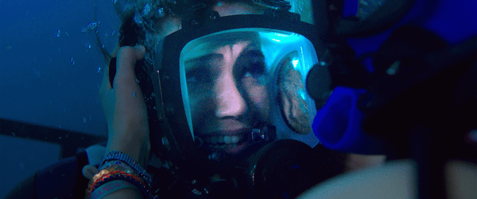 Kate swims back up to communication range to tell Taylor they are low on air and that Lisa is trapped. Taylor sends some air tanks down and tells them the coast guard is an hour out. He also warns her that the second tank may cause nitrogen narcosis, which can lead to hallucinations.