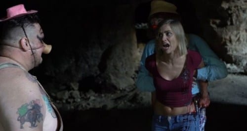 Why? Many years before the motel was the home to a circus of clowns. They lived in happiness and peace and got their money from a nearby goldmine. It’s that goldmine that saw a bunch of rednecks turn up wanting what wasn’t theirs. They set the motel on fire killing all the clowns and thus we have a load of vengeful spirits.