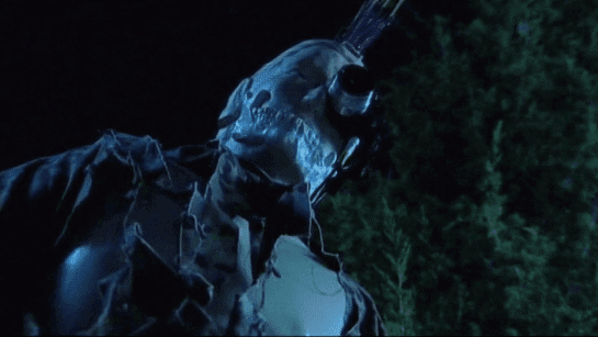 How does he come to life? The movie doesn’t offer any kind of explanation about that. One minute he’s just a messed up looking dummy, the next he is hunting down the cast.