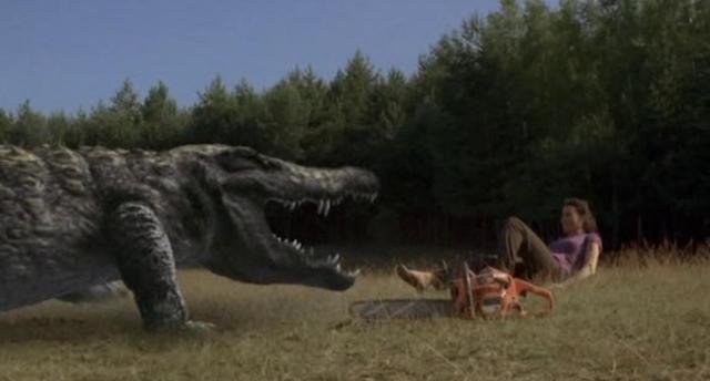 The crocodiles are now adults and Connor is struggling to keep up with their dietary demands, resorting to stealing meat from the local shop. It’s not enough though, the crocs are hungry and there’s now plenty of good eating on the lake. Teenagers, a hunter named Reba, Nathan, and whoever else is in the movie.