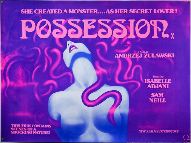 One of the most spectacular ‘video nasties’ you’ll see, Possession is a 1981 art-house/psychological horror directed by Andrzej Żuławski. It stars Isabelle Adjani and Sam Neill as a married couple with problems. Oh, so many problems.