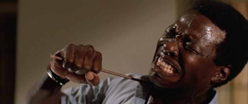 The effects are minimal but when Prince of Darkness really gets going, it delivers. The gore that it does display is excellent and very effective. Also, the motionless homeless people it presents is an interesting and creepy element. Alice Cooper leading them is amusing, especially when he uses his infamous bicycle impalement trick to murder someone. However, I’m not sure I agree on the commentary about homelessness within the film. It literally compares them to insects.
