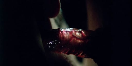 When she finally wakes, she finds that she has mutated and a has a small orifice in her armpit. Unable to live without blood, Rose is at the mercy of a phallic-like stinger that emerges from the hole and stabs into her victims drinking their blood.