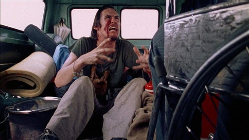 Once it’s confirmed that everything is ok, they decide to visit the old Hardesty family homestead but pick up a hitchhiker along the way (Edwin Neal). The man is very unusual and after trying to extort money out of Franklin, cuts him with a straight razor and is kicked out of the van.