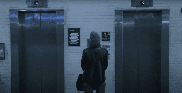 She continues to her car and makes her way up the lift, only to have it stop at the floor before hers. The doors open and who is waiting outside? Only the hooded stranger again.
