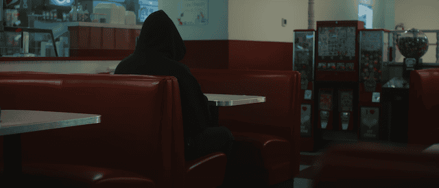 Of course, she sends him a text, but while she waits for a response, she gets a weird vibe off the only other patron inside. Stealing a glance at a man with their back to her, wearing dark clothes and with a hood up. The bad vibe this man is giving off gets worse when Emma ends up going down a rabbit hole regarding local missing women, and the lone waitress of the diner confides in her that she is concerned about the hooded man.