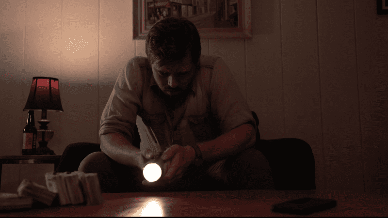 Starring Nathan Sutton as Rich, our introduction to him is from his perspective as he turns a torch that is pointed at his fireplace on and off. On and off three times exactly, which is important to the plot.