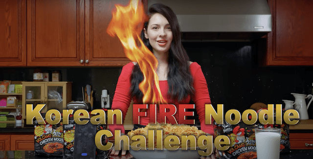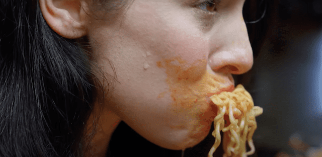 Carly (Becky Bush) is an online personality attempting to do the ‘Korean fire noodle challenge’ which consists of eating a large quantity of the noodles within 10 minutes. The current record stands at 15 packs and Carly plans to smash it by attempting to eat 20. The equivalent of 10,000 calories and 10 pounds of food.