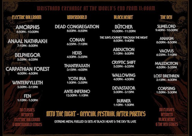 Another Incineration Fest is in the bag, and what a day it was. The sun was shining, everyone was wearing black and wishing they had left the heavy patch jacket at home, but mostly everyone was looking forward to spending the next ten-plus hours in dark rooms listening to heavy music. For one day, the heart of Camden and four of its most iconic venues are taken over and even though this area is known for its eclectic makeup, many of the tourists of Camden have bemused looks on their faces upon seeing some of the t-shirt designs floating around.