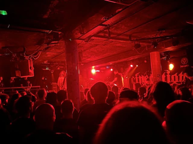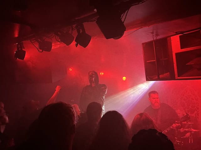 Carl – My night ends where it began, inside The Black Heart. Feeling a bit tipsy, very tired, and very satisfied, to wrap up a fantastic Incineration Fest with some immersive black metal, feels right. I only manage to catch the last twenty-odd minutes of Abduction, but I’m very glad I did as they’re on incredible form and pushing the Black Heart sound to its most extreme. I’ve never been so glad for ear-plugs, and even then, their heaviness is throbbing at the back of my head.