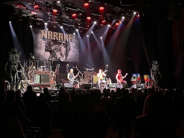 It’s a wall of noise that greets as we arrive to catch the second half of opening act, Naraka. Delivering a furious explosion of modern death and thrash, the venue may be barely half full but Naraka don’t care. They have one mission and that’s to get those who are watching, head-banging with all their might.
