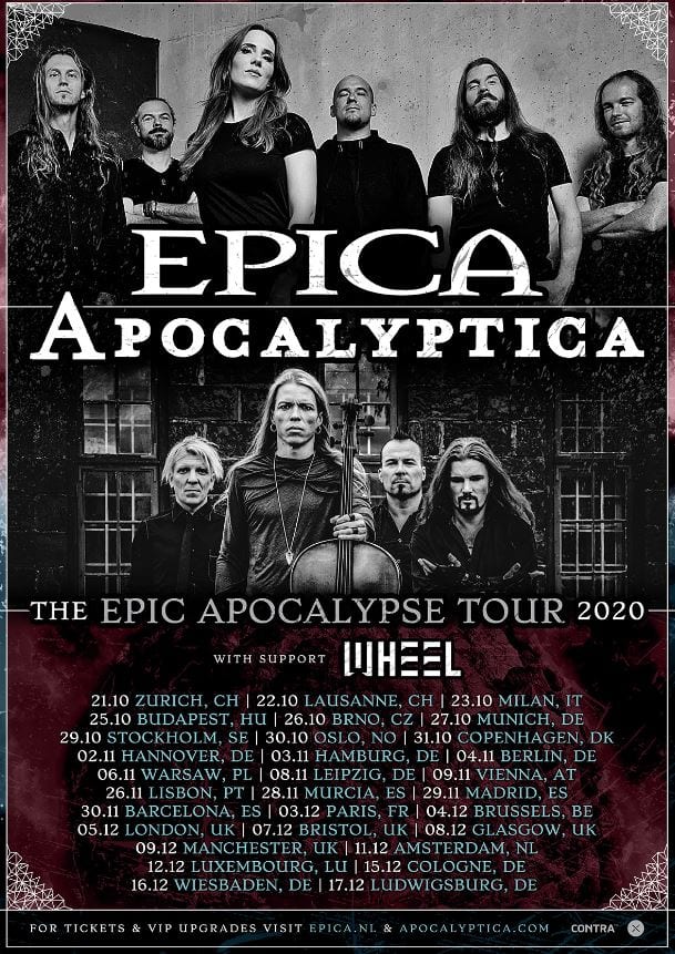 This fall Dutch Symphonic titans Epica and Finnish Cello masters Apocalyptica will join forces for the ‘Epic Apocalypse Tour’. The tour comes in support of Epica’s upcoming album which will be released later this year. Support on all dates will be provided by Helsinki prog metallers Wheel.