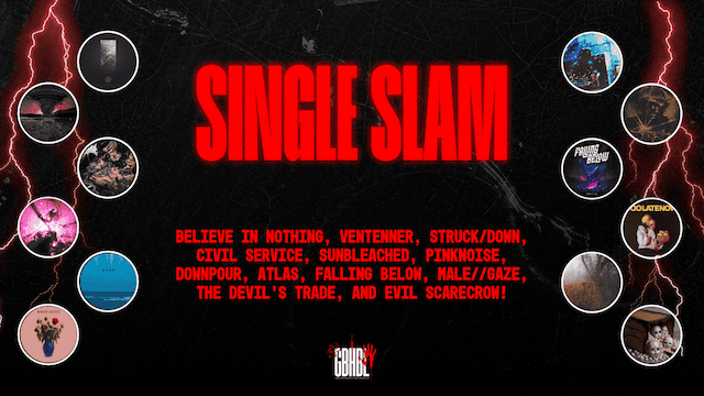Single Slam: Believe in Nothing, Ventenner, Struck/Down, Civil Service, sunbleached, PINKNOISE, Downpour, Atlas, Falling Below, male//gaze, The Devil’s Trade, and Evil Scarecrow!