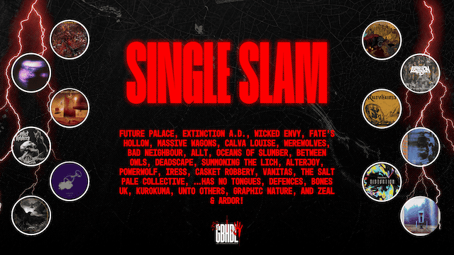 Single Slam: Future Palace, Extinction A.D., Wicked Envy, Fate’s Hollow, Massive Wagons, Calva Louise, Werewolves, Bad Neighbour, Allt, Oceans of Slumber, Between Owls, Deadscape, Summoning the Lich, Alterjoy, Powerwolf, Iress, Casket Robbery, Vanitas, The Salt Pale Collective, …has no tongues, Defences, Bones UK, Kurokuma, Unto Others, Graphic Nature, and Zeal & Ardor!