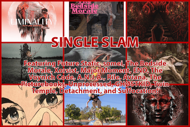 This week’s single slam features Future Static, somei, The Bedside Morale, Xorsist, Major Moment, END, The Voynich Code, A.N.J.A., Rile, Aviana, The Picturebooks, Unprocessed, GHØSTKID, Twin Temple, Detachment, and Suffocation.