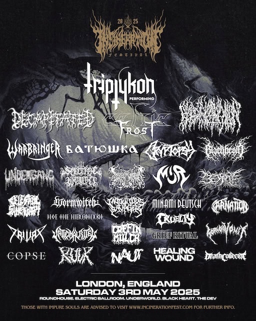 It’s the most wonderful time of the year! When black clouds roll in over London and extreme sounds ring out across Camden. It’s Incineration Festival, the 2025 edition, and once again those behind the one-day extreme metal fest have put together a line-up liable to make a nun blush and a priest grimace.