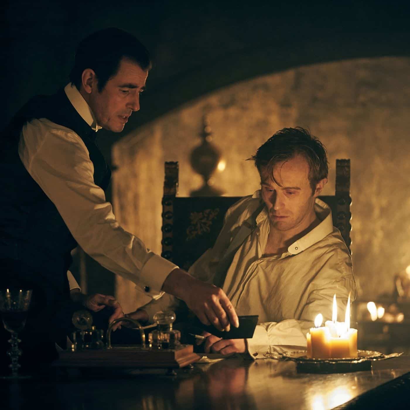 The client takes a shine to him, and so Harker must stay. His health fails, he gets weaker by the day – but the years fall away from Dracula until he stands revealed as Danish actor Claes Bang.